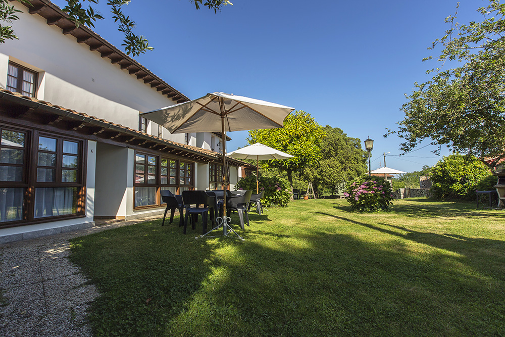 Toda la edificación, contruida sobre una antigua casa asturiana, dividida en apartamentos independientes con salida directa al jardín, se concentra en una finca cerrada de unos 5000 m2, de uso privado, muy cerca de varias playas naturales que aún se conservan de la zona, como la que da el nombre al establecimiento y que está situada en el mismo pueblo.