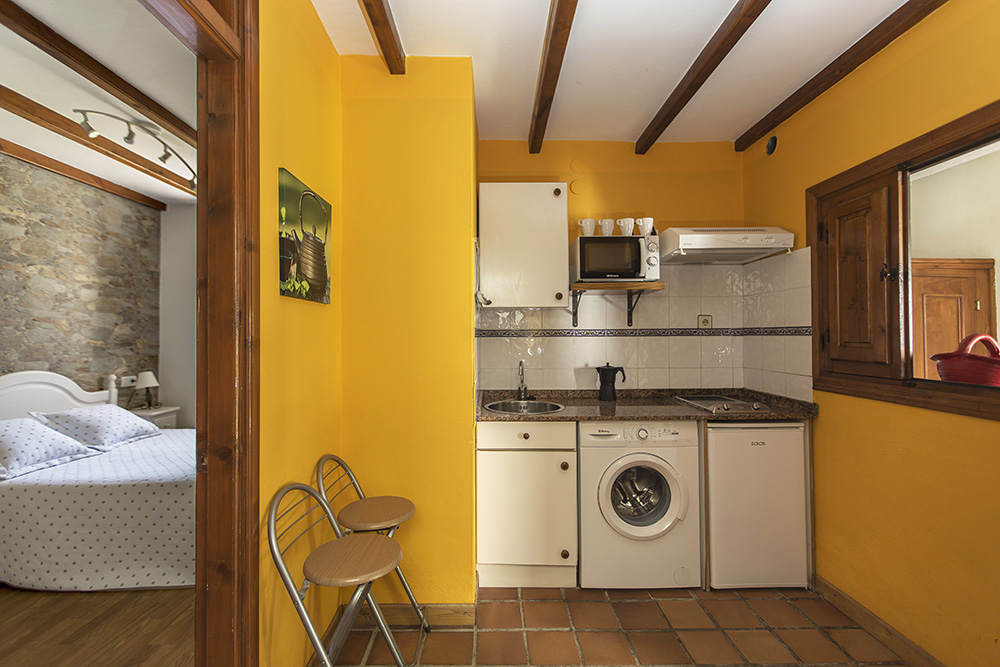 Apartamento situado en planta baja, de 1 habitación con cama de matrimonio, cocina y baño, con salida directa al jardín.
