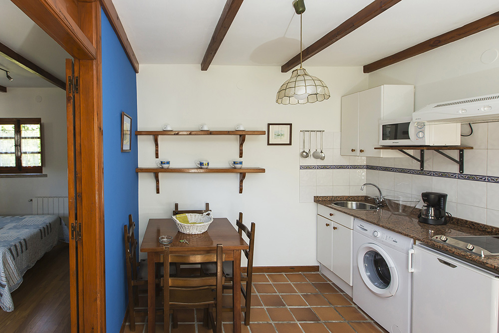 Toda la edificación, contruida sobre una antigua casa asturiana, dividida en apartamentos independientes con salida directa al jardín, se concentra en una finca cerrada de unos 5000 m2, de uso privado, muy cerca de varias playas naturales que aún se conservan de la zona, como la que da el nombre al establecimiento y que está situada en el mismo pueblo.