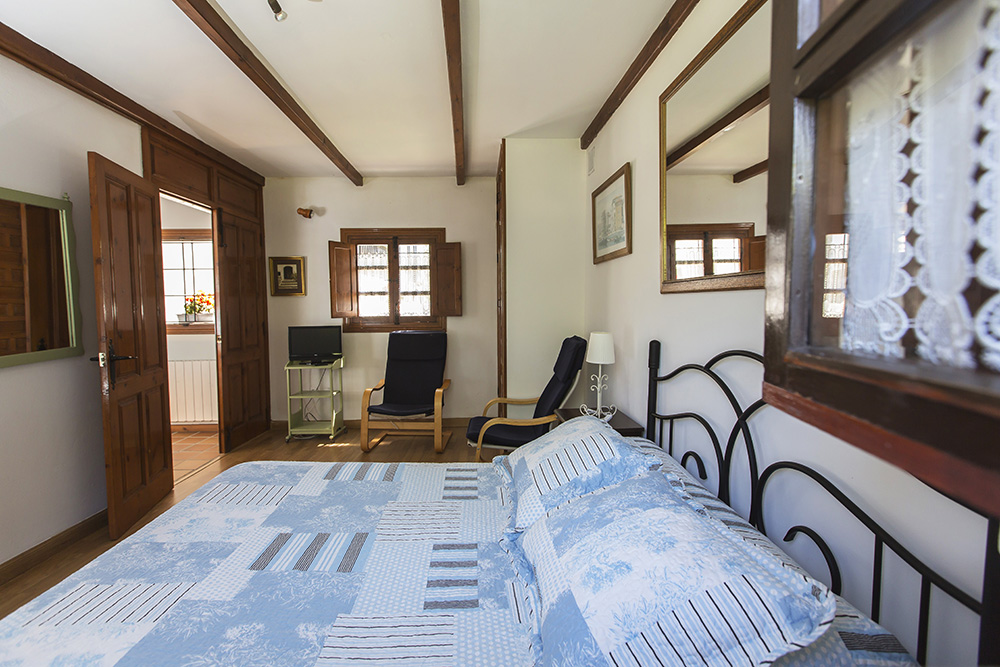 Habitación con cama de matrimonio equipada con ropa de cama.