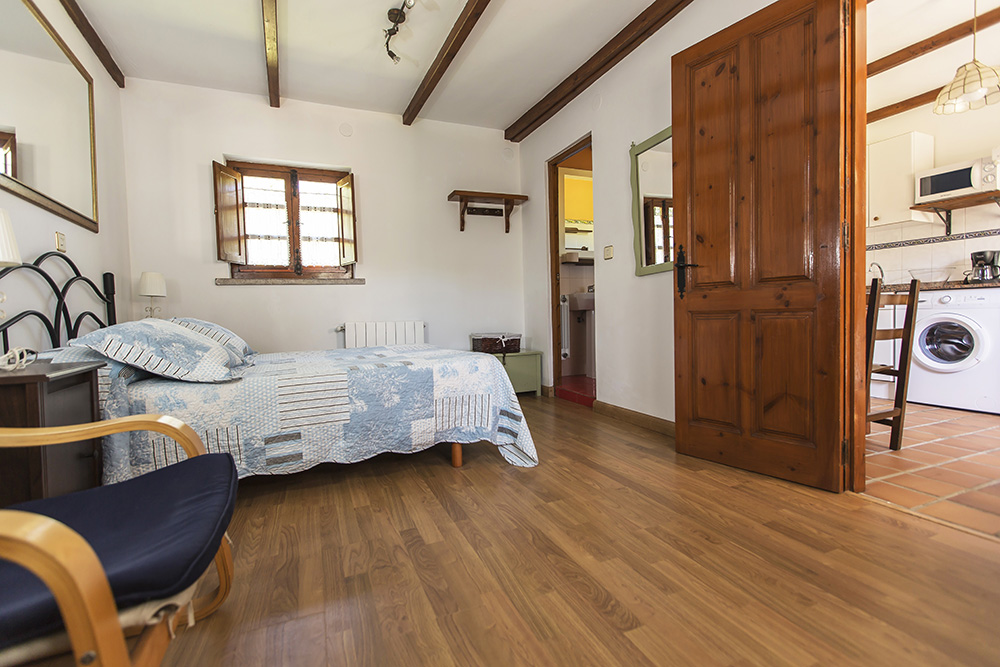 Apartamento situado en planta baja, de 1 habitación con cama de matrimonio, cocina y baño, con salida directa al jardín.