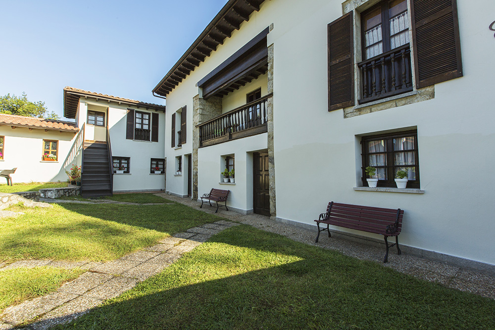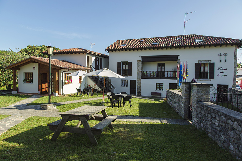 Toda la edificación, contruida sobre una antigua casa asturiana, dividida en apartamentos independientes con salida directa al jardín, se concentra en una finca cerrada de unos 5000 m2, de uso privado, muy cerca de varias playas naturales que aún se conservan de la zona, como la que da el nombre al establecimiento y que está situada en el mismo pueblo.